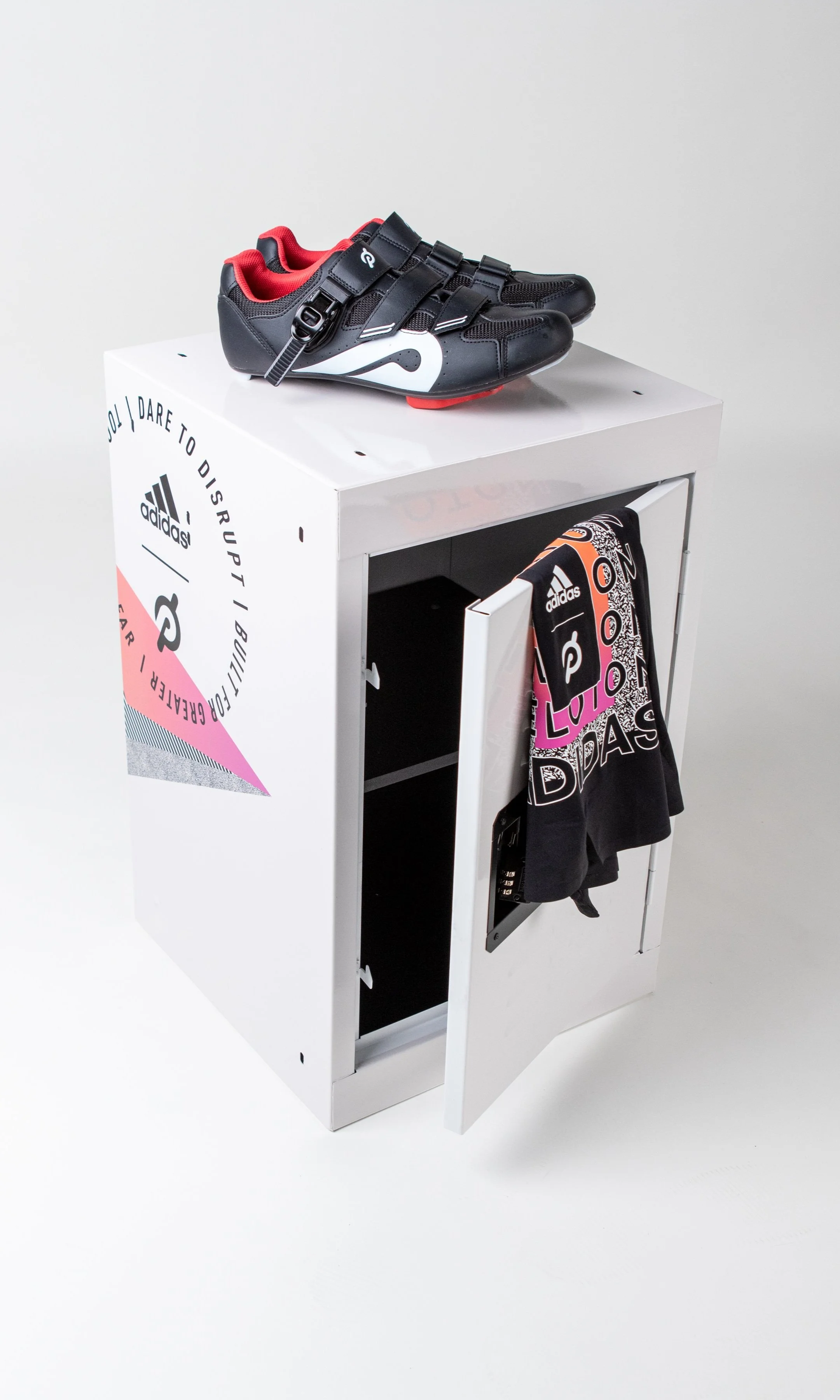 We designed a mini locker, adorned with Peloton and adidas swag, to mimic the gym experience and give riders a place to store their gear and show their love of both brands. This opportunity served as a pivotal brand moment for adidas, our main client, by engaging passionate consumers within the Peloton community.