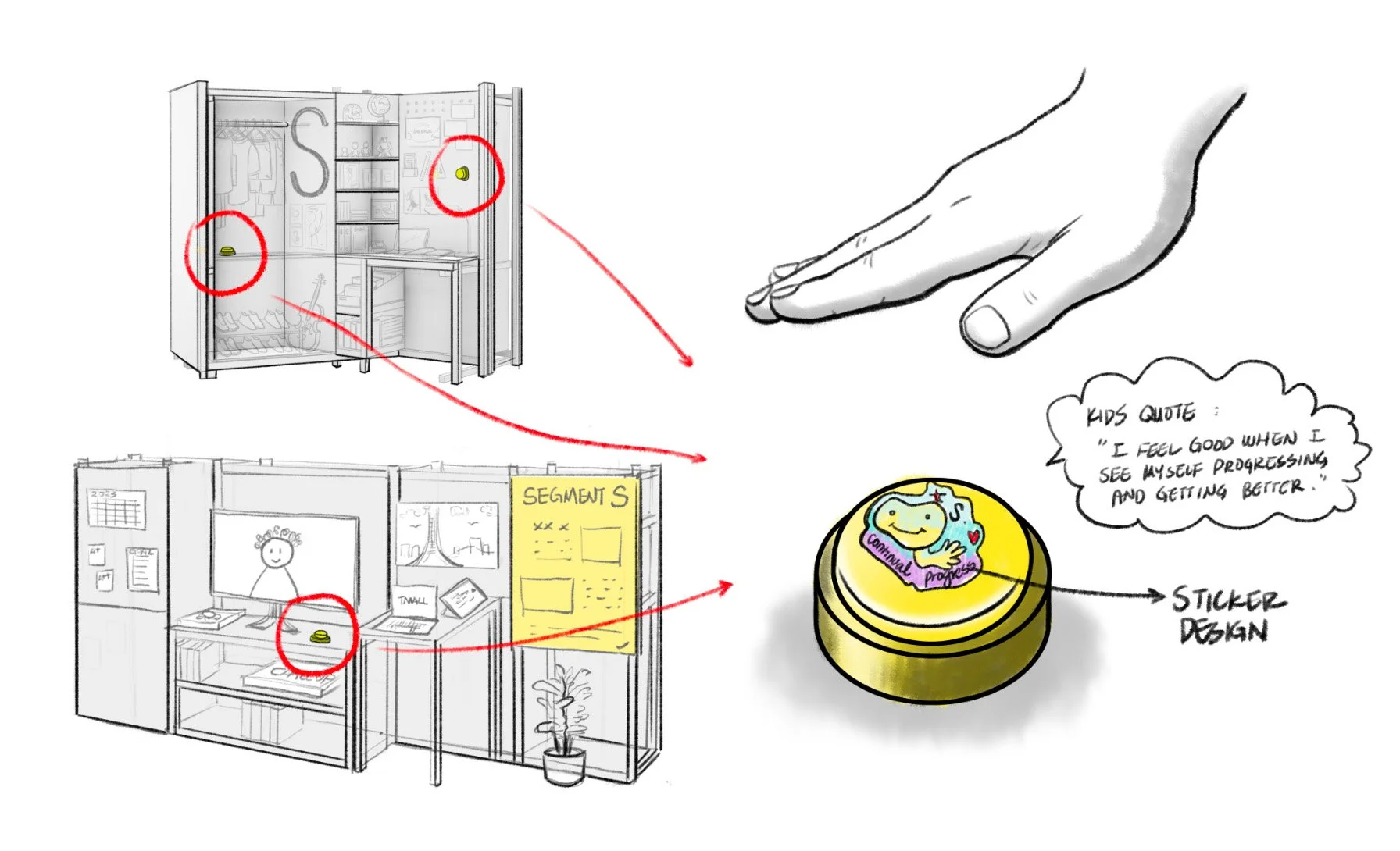 We constructed a classroom experience catering to all three kids’ ways of learning. The classroom had color-coded artifacts and quotes assigned to each segment, while each kid had their own locker, featuring unique backpacks, clothes, stickers, books, and educational elements that corresponded to their unique personalities.